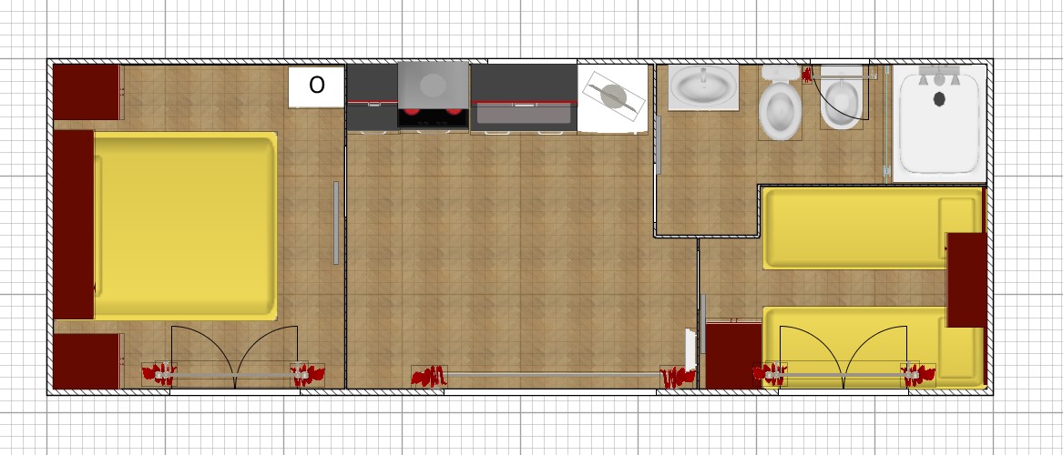 Trilocale di circa 24 mq, 1/5 posti letto.