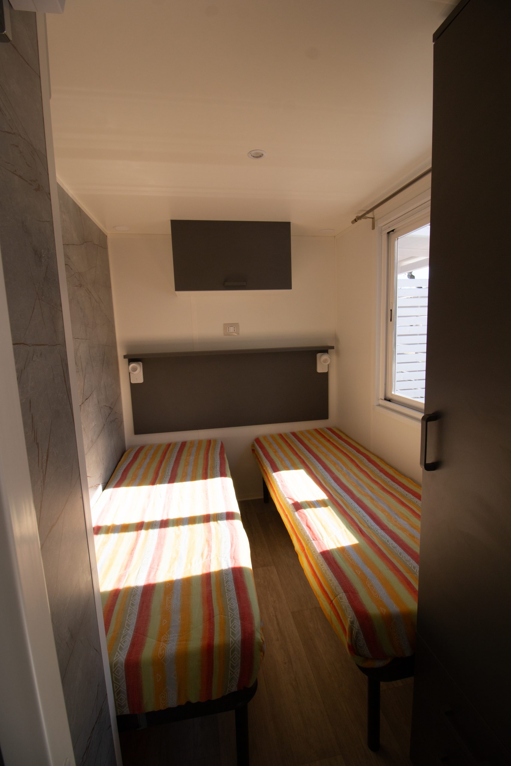 Una Camera con letto matrimoniale (1.60×1.90), e unaCameretta con due letti singoli (0.70×1.90), provviste di cuscini e trapunte estive.